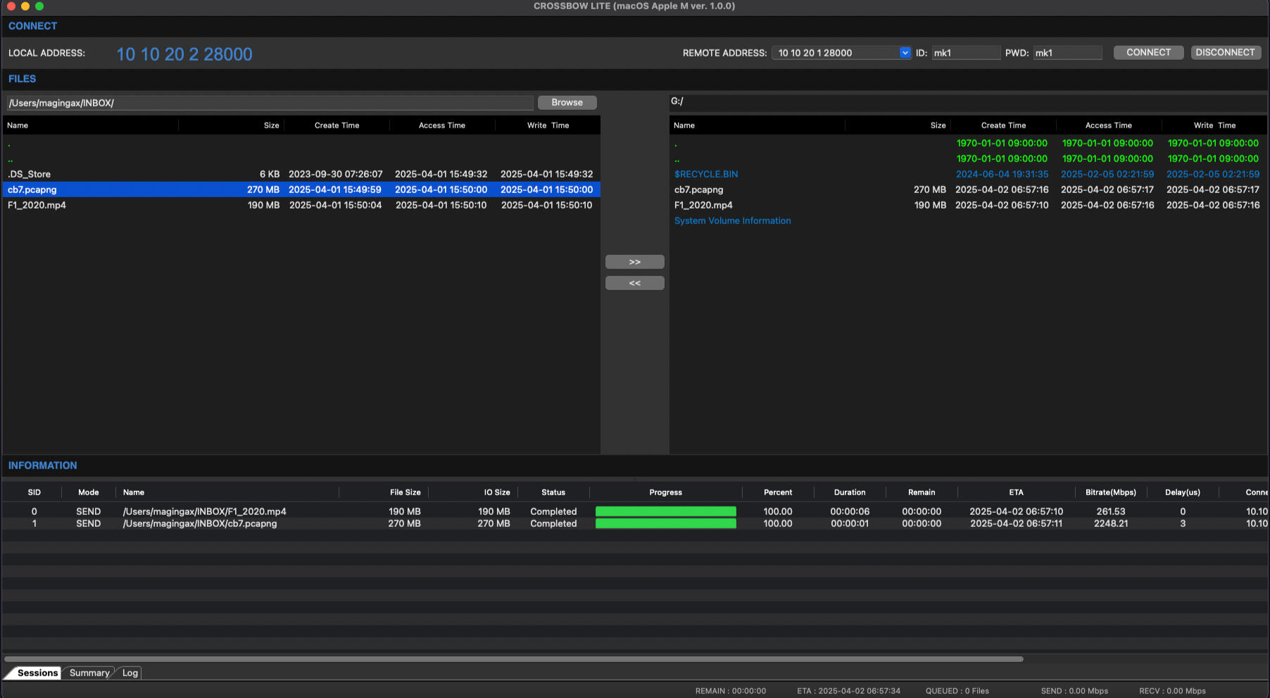 Standard FTP (TCP) protocols are designed to panic; they interpret even minor packet loss (0.1%~1%) or high latency as network congestion, drastically throttling speeds to unusable levels.Crossbow is different. Powered by our proprietary mkudp9 engine, it bypasses these inherent TCP limitations.Crossbow intelligently recovers lost packets without slowing down, delivering up to 10,000x faster performance than FTP in long-distance international transfers.
